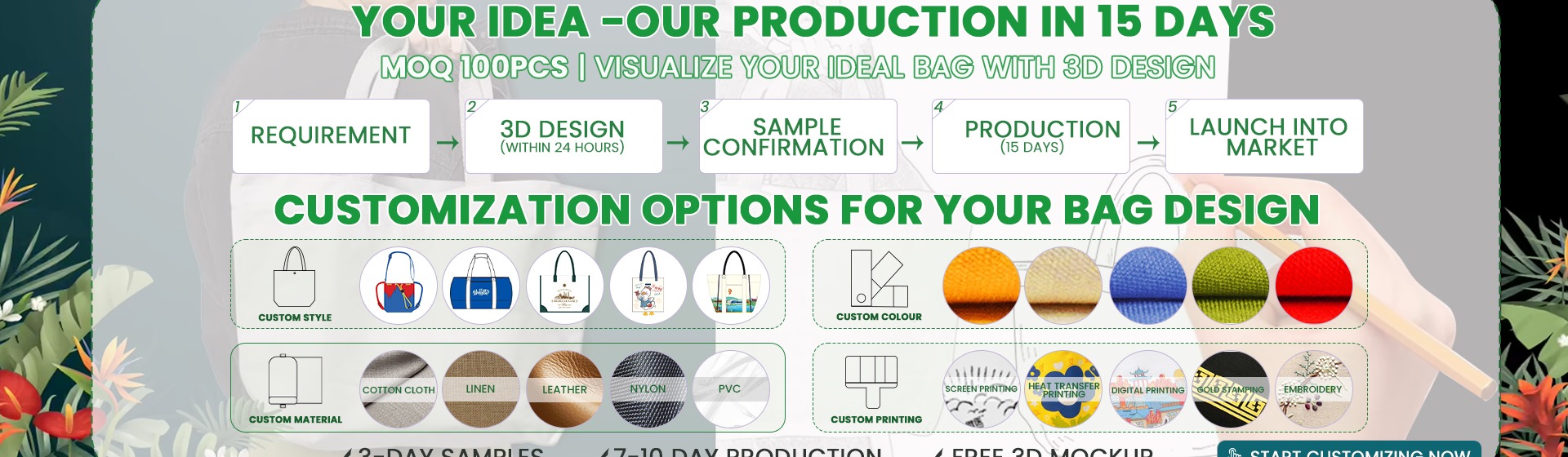 Principaux produits : Sacs à provisions, sacs à main, sacs à dos, sacs de toile